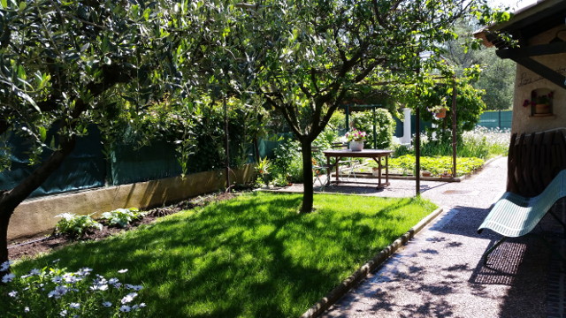 Sa pelouse, son potager, son jardin fleuri ombragé par des arbres fruitiers. Au retour de vos baignades et journées de détente, repos et tranquillité sont assurés sous la tonnelle provençale.